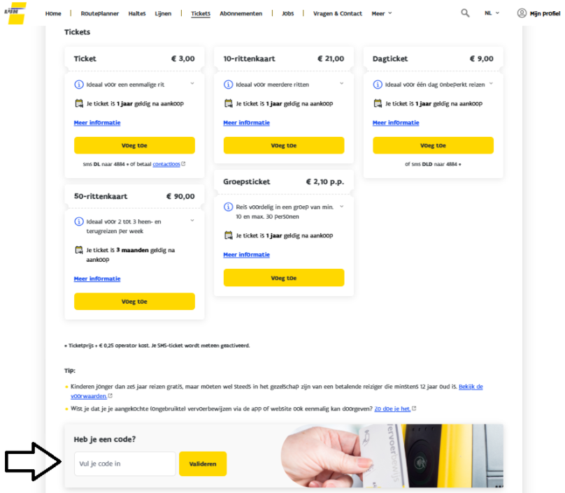 - Hast du keinen Link erhalten, sondern nur einen Code? Gehe dann zur Ticketseite auf der Website oder öffne die App von De Lijn und gib den Code bei „Hast du einen Code?“ ein: