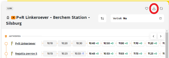 - Download the timetable by clicking the icon in the top right corner.