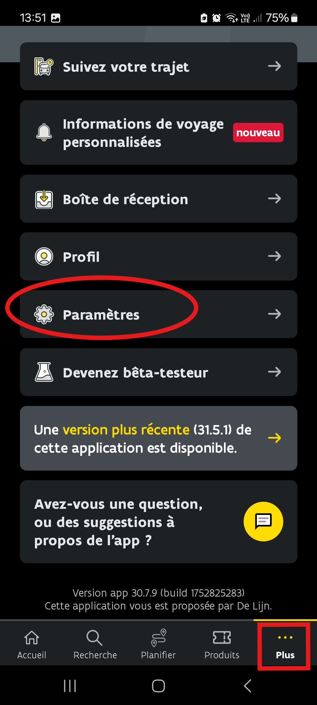- Cliquez ensuite sur « Paramètres »