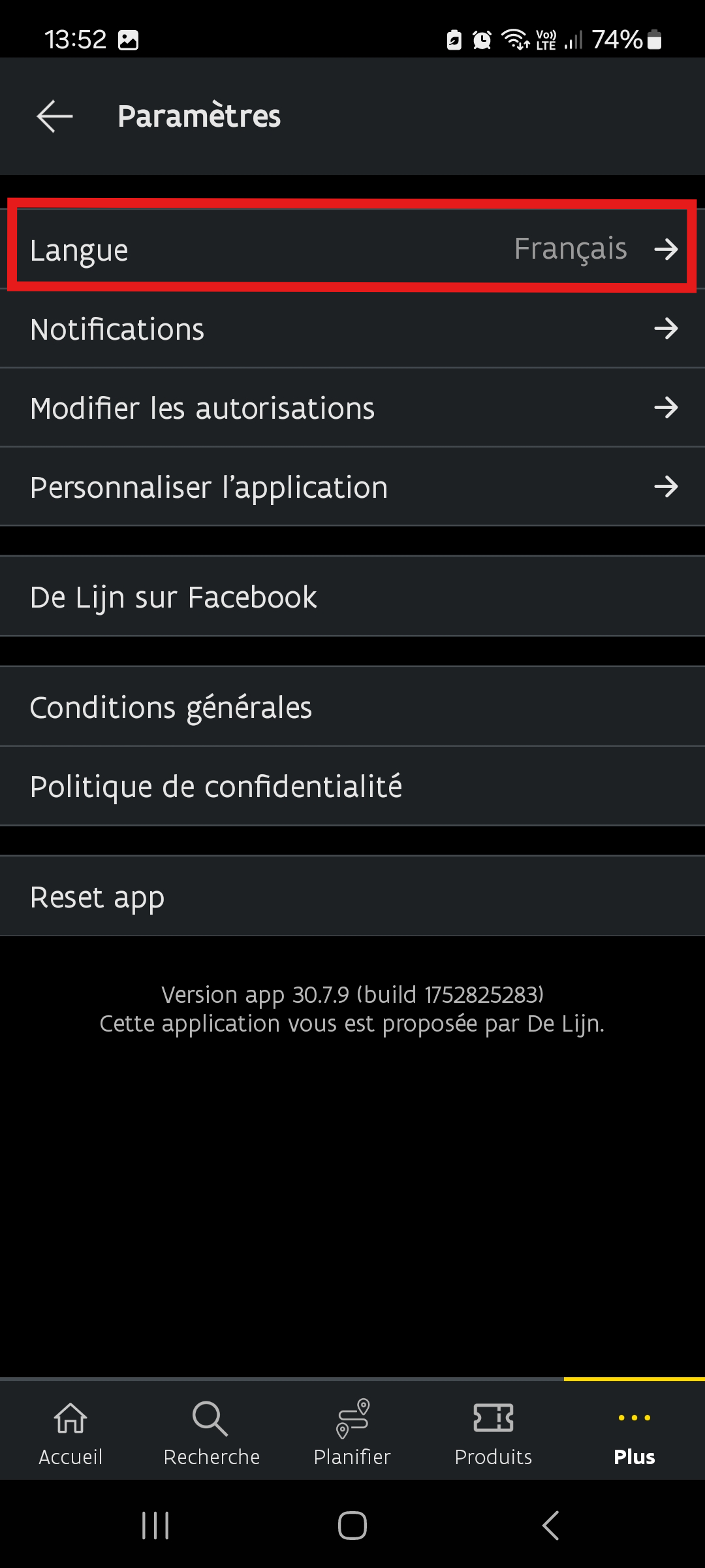 - Redémarrez l’application pour appliquer la langue choisie